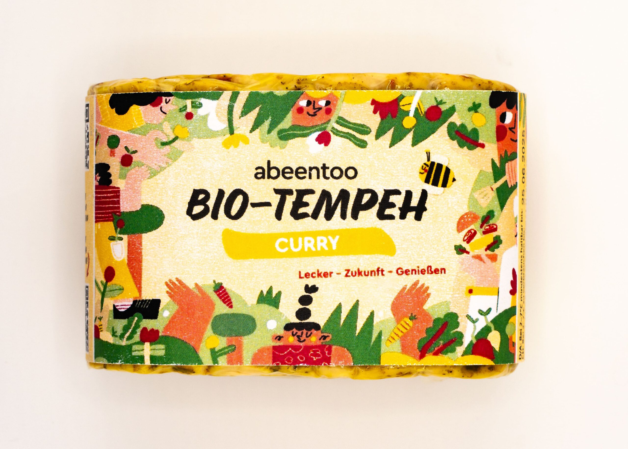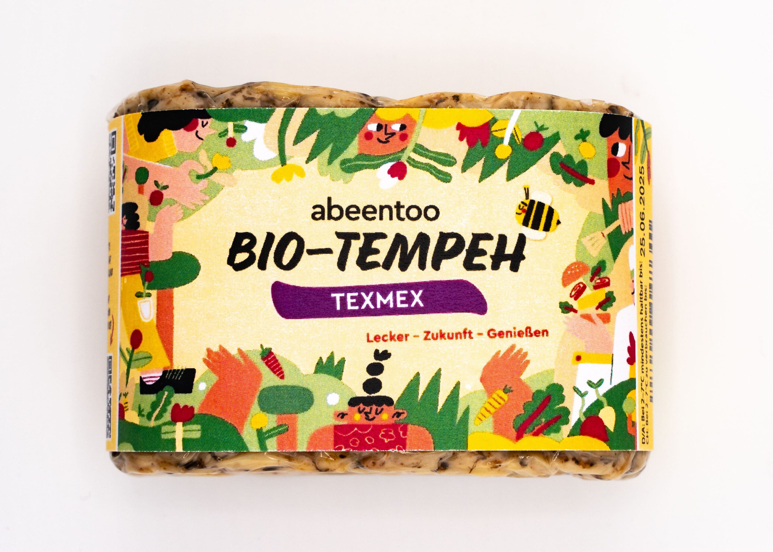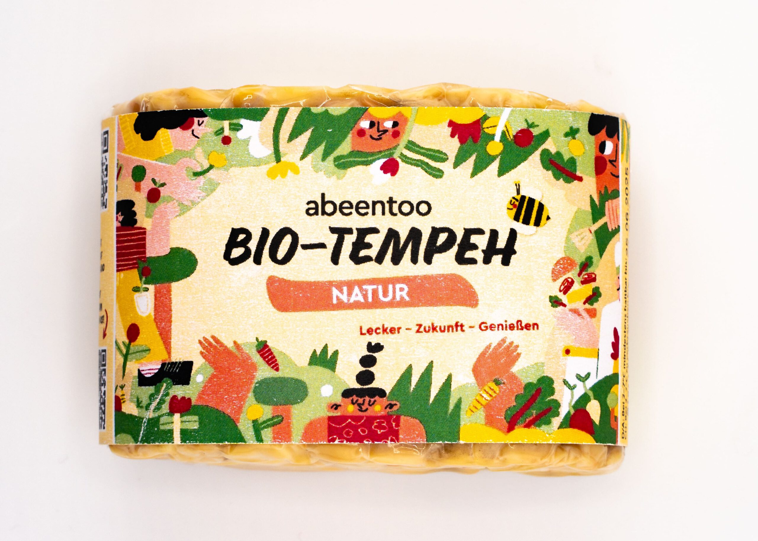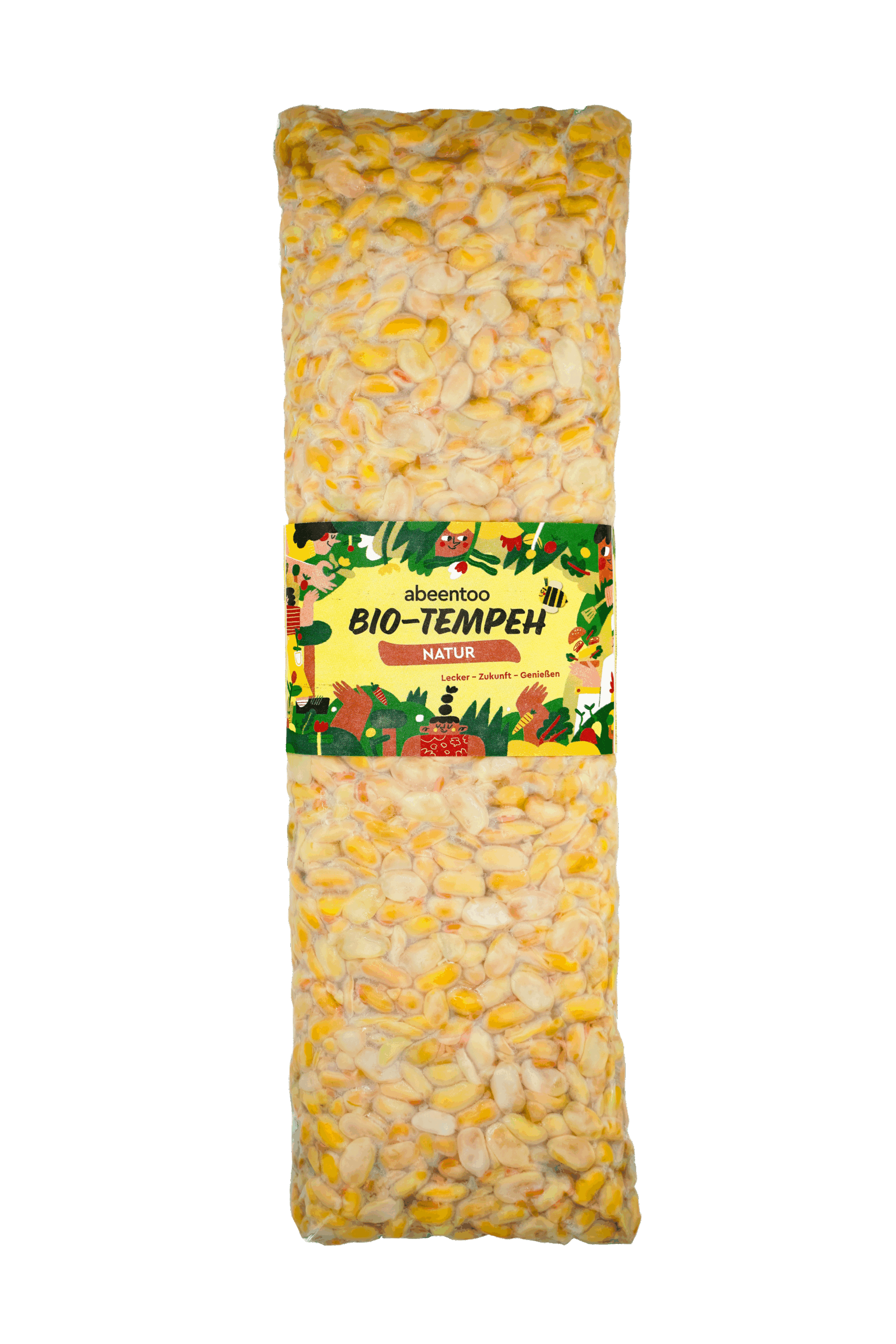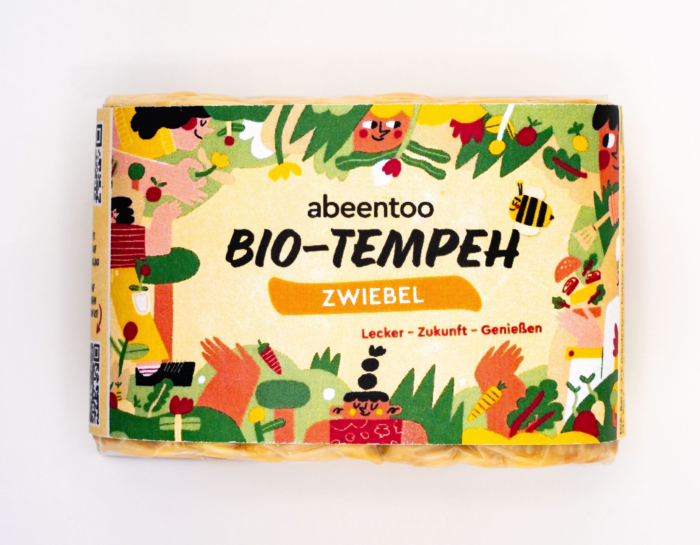 Bio-Tempeh Zwiebel von vorne, verpackt